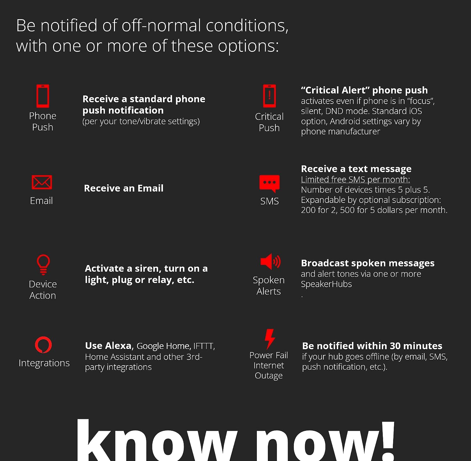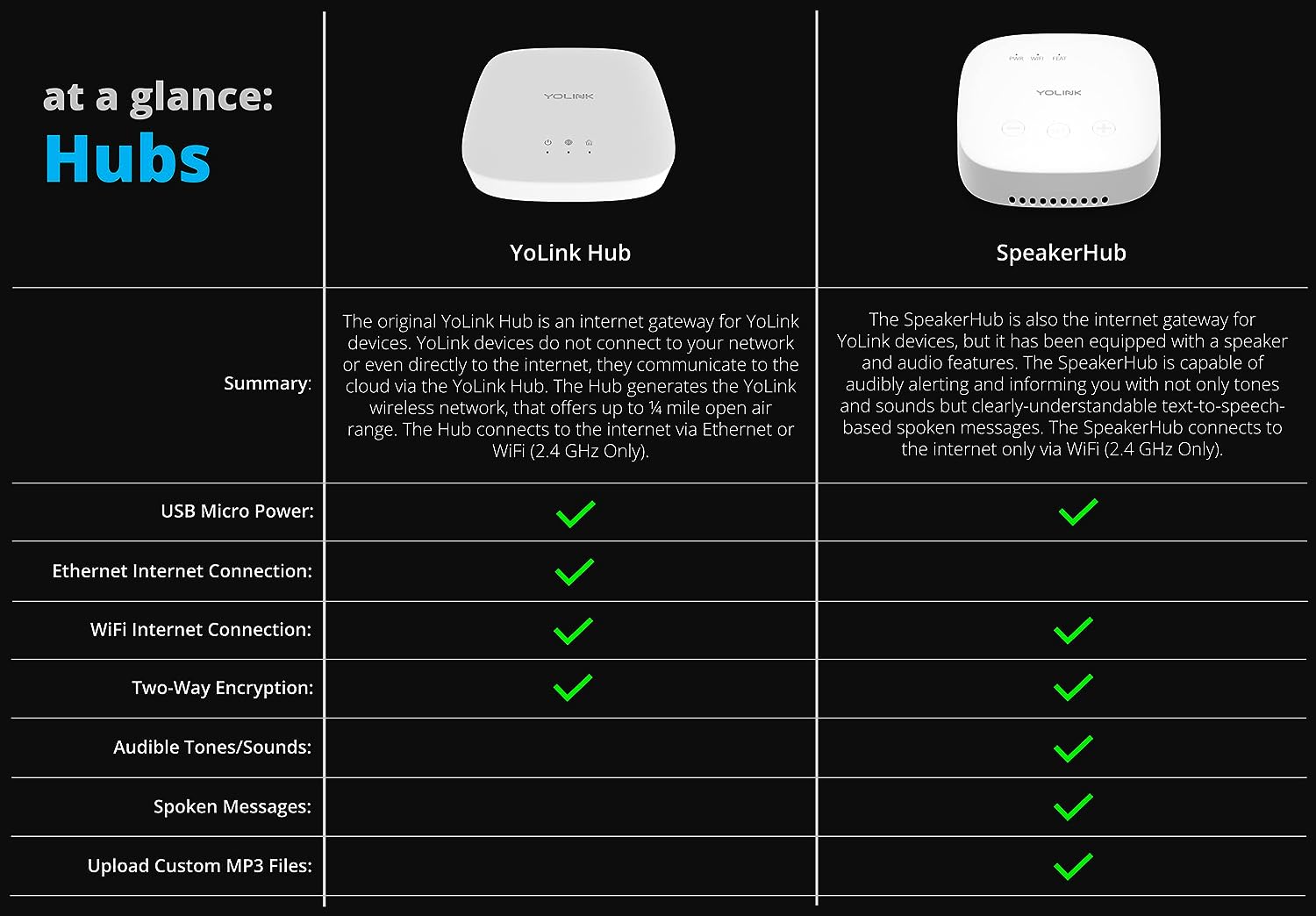 • NO WIFI WORRIES! Many smart home products are WiFi-based, which appears convenient, but each WiFi device on your network is a security risk (a way for hackers to get into your home network). Not to mention, as you add more devices, your WiFi gets bogged down. YoLink devices do NOT connect to your WiFi, they connect only to the Hub, which connects them to the cloud.