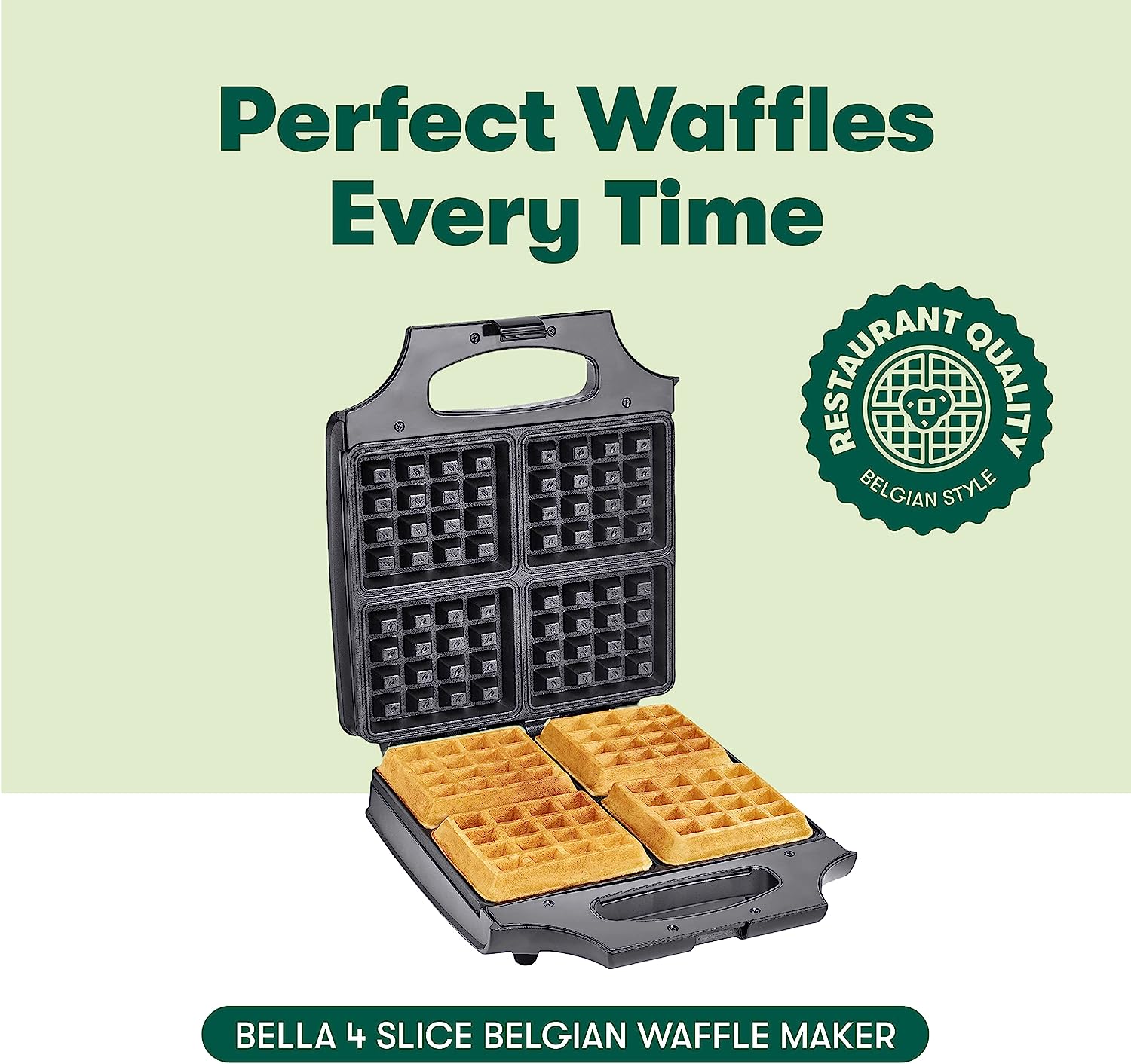 The cool-touch handles and locking latch make it safe and easy to store, while the compact design allows you to stand it up vertically to save space. Plus, the dual PFOA-free and nonstick surfaces result in fluffy and tender waffles that are crispy on the outside and golden brown on the inside.
