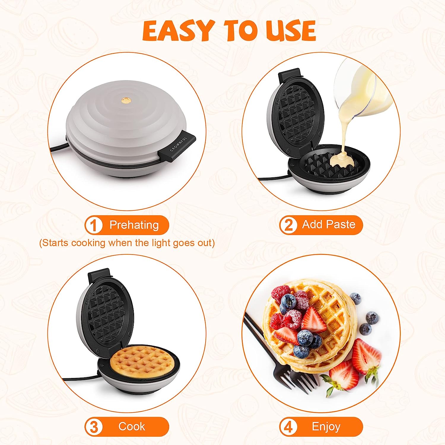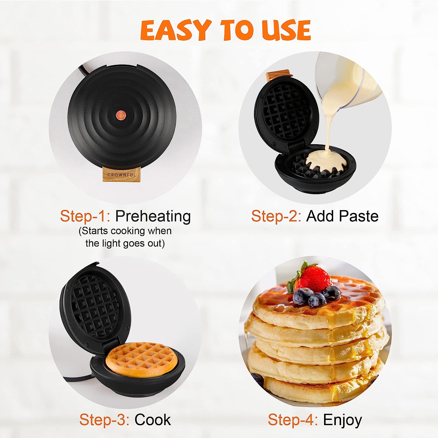 • ? 【Inclusion】The package includes one Mini Waffle Maker and a Recipe Guide. CROWNFUL offers a 12-month warranty and aftersales support. Customer Satisfaction is our TOP priority. If you have any problems, please feel free to contact us.