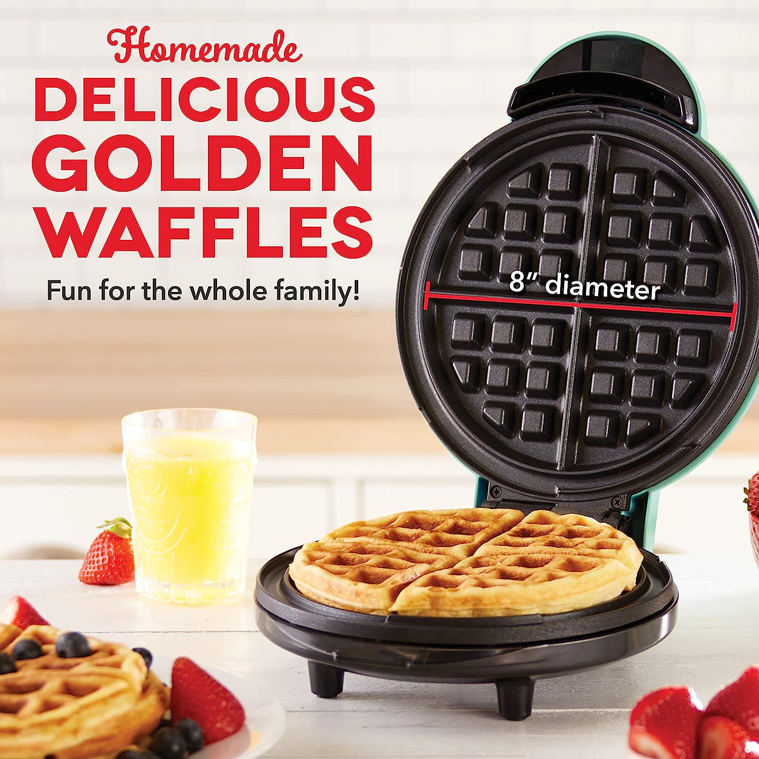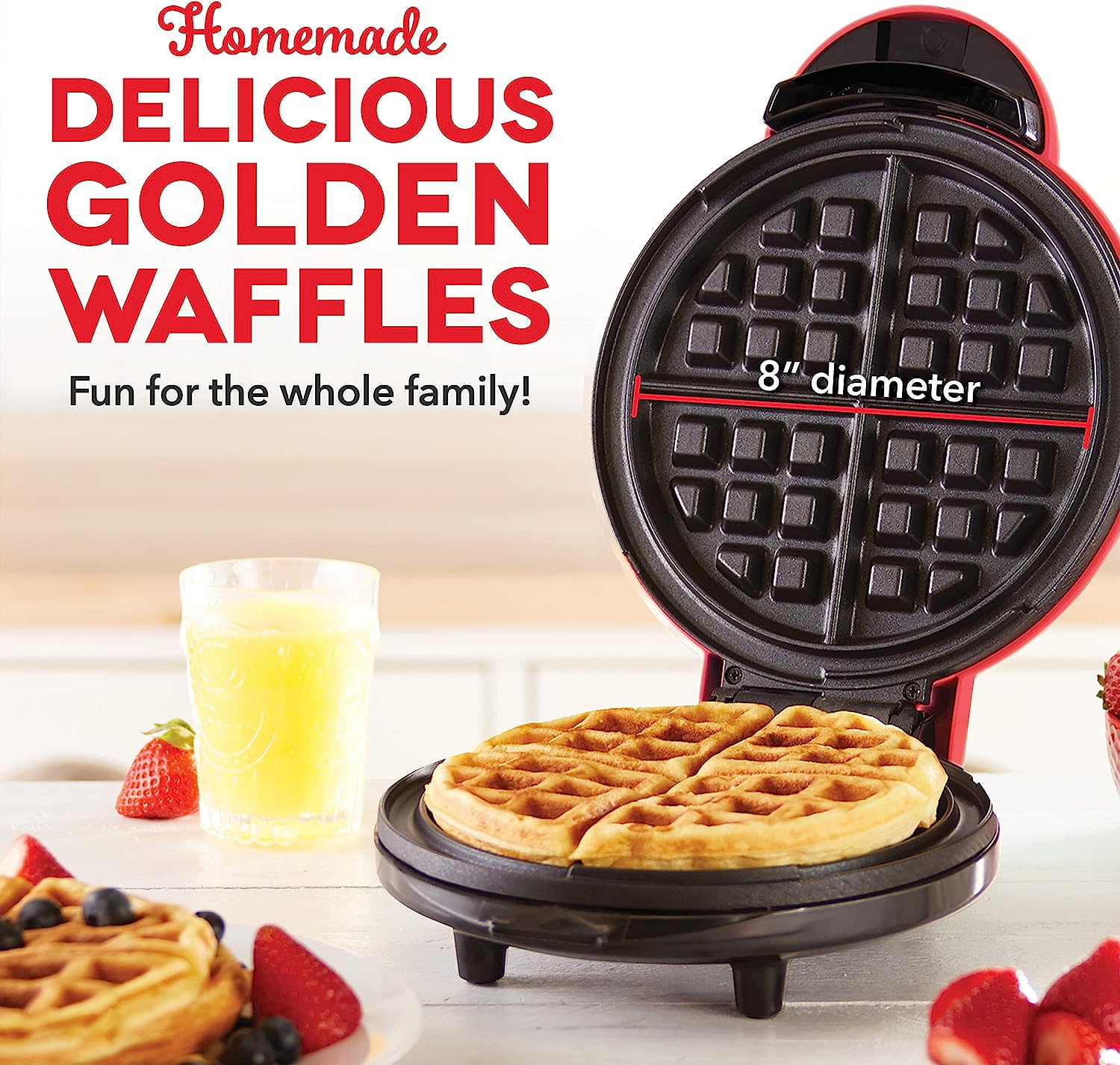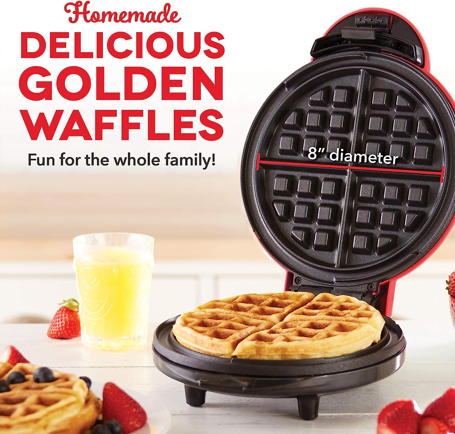 • COMPACT plus PORTABLE: 8” Express Waffle Maker takes up minimal counter space and is a MUST-HAVE for that first apartment, smaller kitchen, college dorm life, or camper/RV traveling
