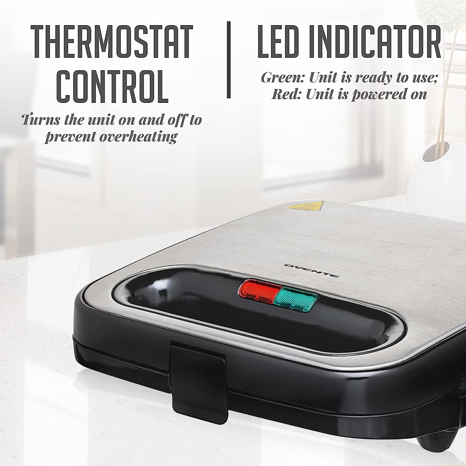 Start your day with healthy and yummy Belgian Waffles! Made of stainless steel housing for durability and long-lasting performance. The OVENTE Electric Waffle Maker creates large waffles with deep pockets that you can fill with tasty toppings and syrup. You can make your waffles as fluffy or crispy as you please, while the cool-touch handle offers a firm grip and helps prevent burns. Equipped with indicator light that will display red when the power is on and green when it is ready. Simply clean and wipe the exterior from any debris with a dry cloth or paper towel once it cools down after use. With the amazing wrapped around channel feature, you can say goodbye to messy and batter leakage. No need to worry about cleaning your kitchen countertop after cooking. Be creative and serve your family chocolate waffles with ice cream for an update on the ice cream sandwich, or try cheddar cheese and chive waffles to add extra spice to your normal breakfast or brunch. This waffle maker machine is a perfect gift idea for any occasion and a nice addition to your wedding registry.