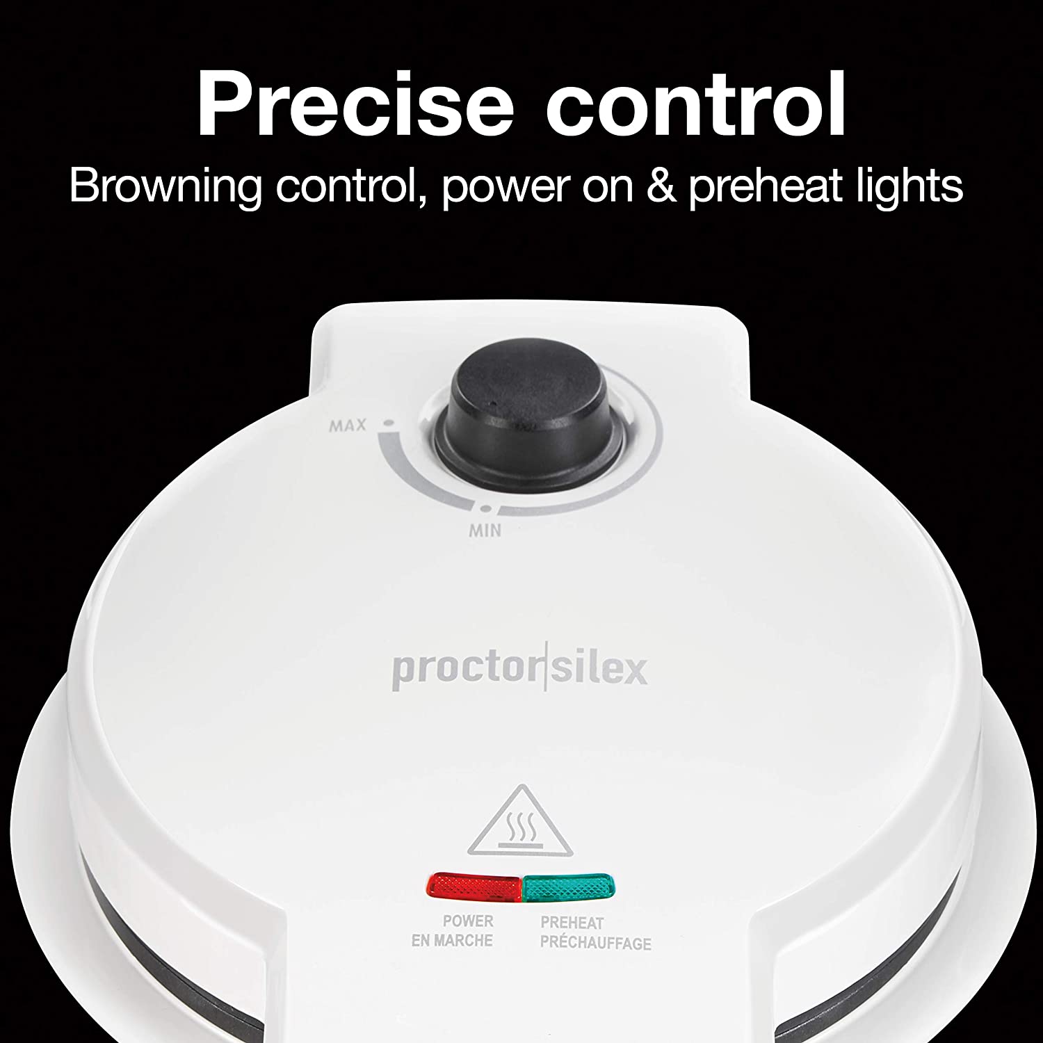 Proctor Silex Waffle Cone and Ice Cream Bowl Maker with Browning Control, Shaper Roller and Cup Press, 7.5” Nonstick Plates, White (26410)