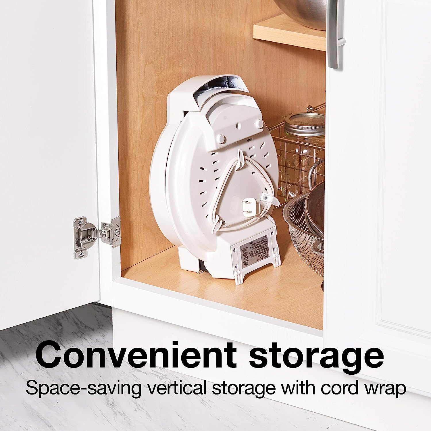 • SPACE-SAVING VERTICAL STORAGE The waffle cone maker stands up vertically for storage which saves space in the kitchen