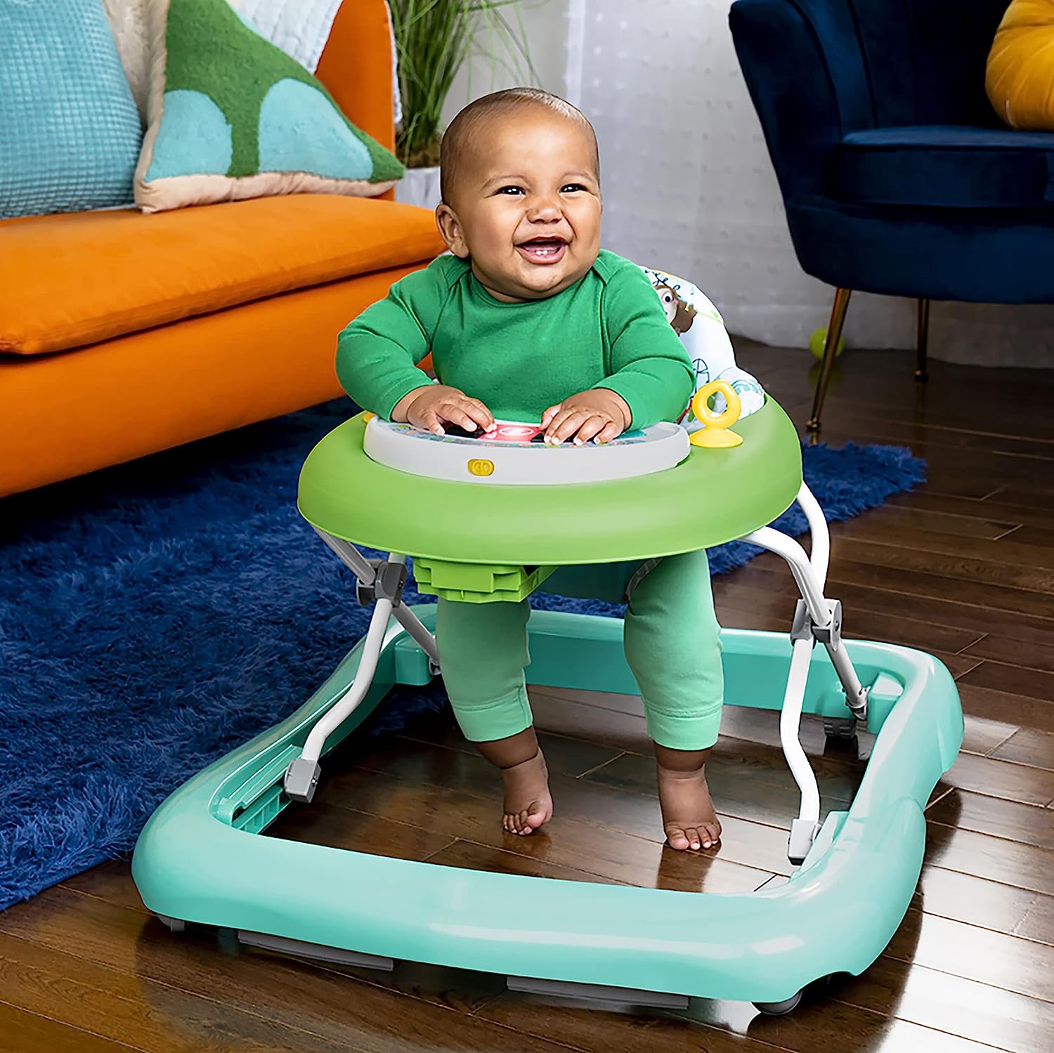 Your wild one has places to go! As your baby zigs and zags around the house in this zebra walker, you can watch from the sidelines with complete peace of mind. It is safety enhanced with rubber feet that "brake" and gives your baby a sturdy frame for walking. Tippy-toes can take off at top speed while you cheer on your pre-walking tot. A steering wheel activates lights and fun sounds, which you can turn down if playtime gets too loud (you are welcome!). The activity center is removable, so you can play on the floor or on the go. Time to walk and roll.