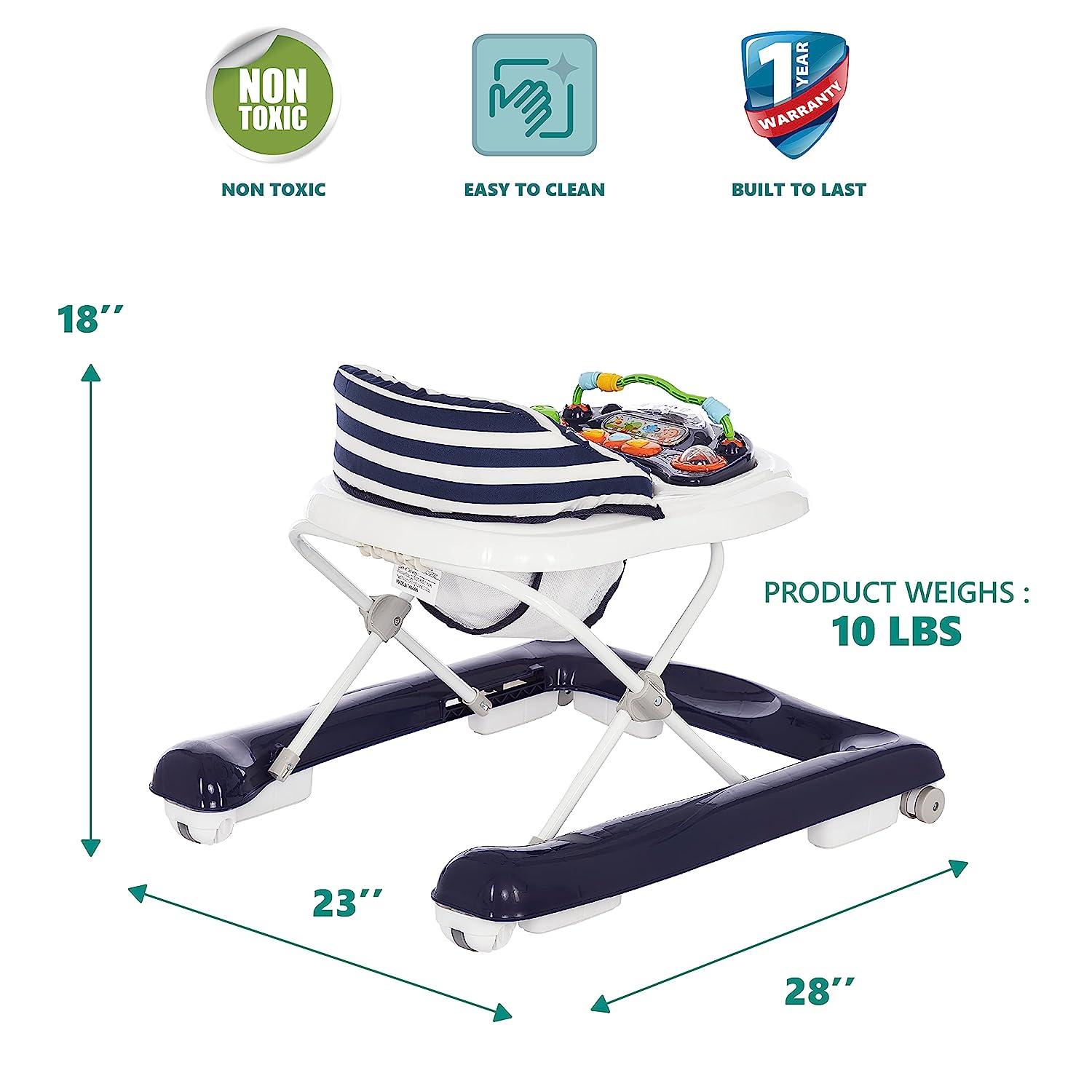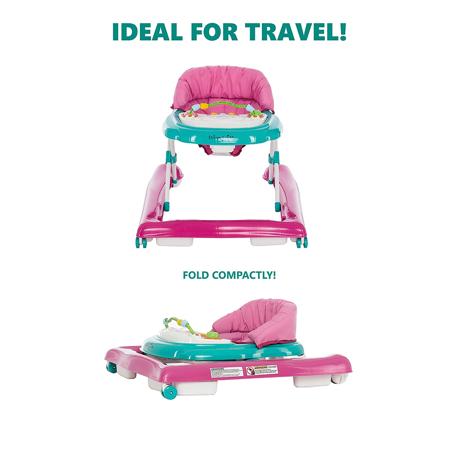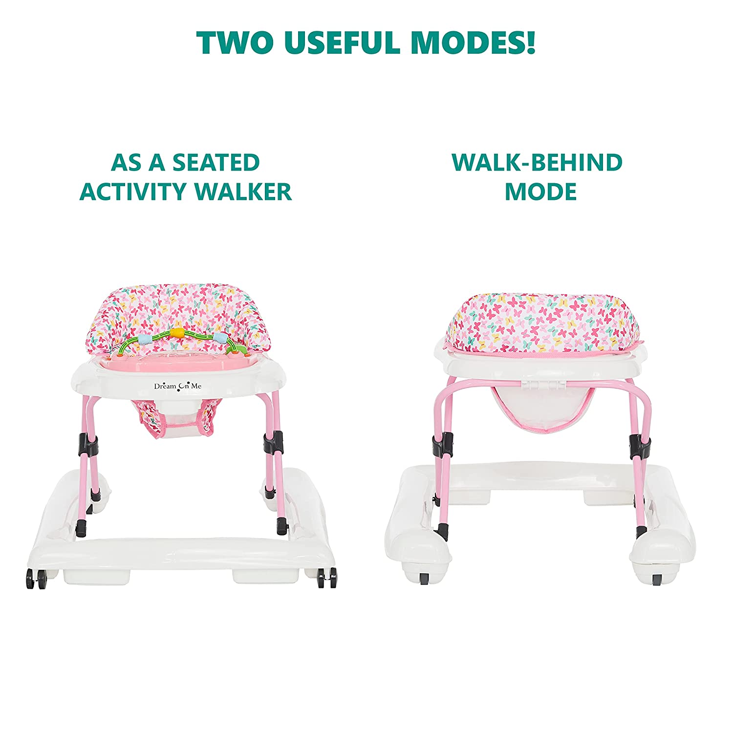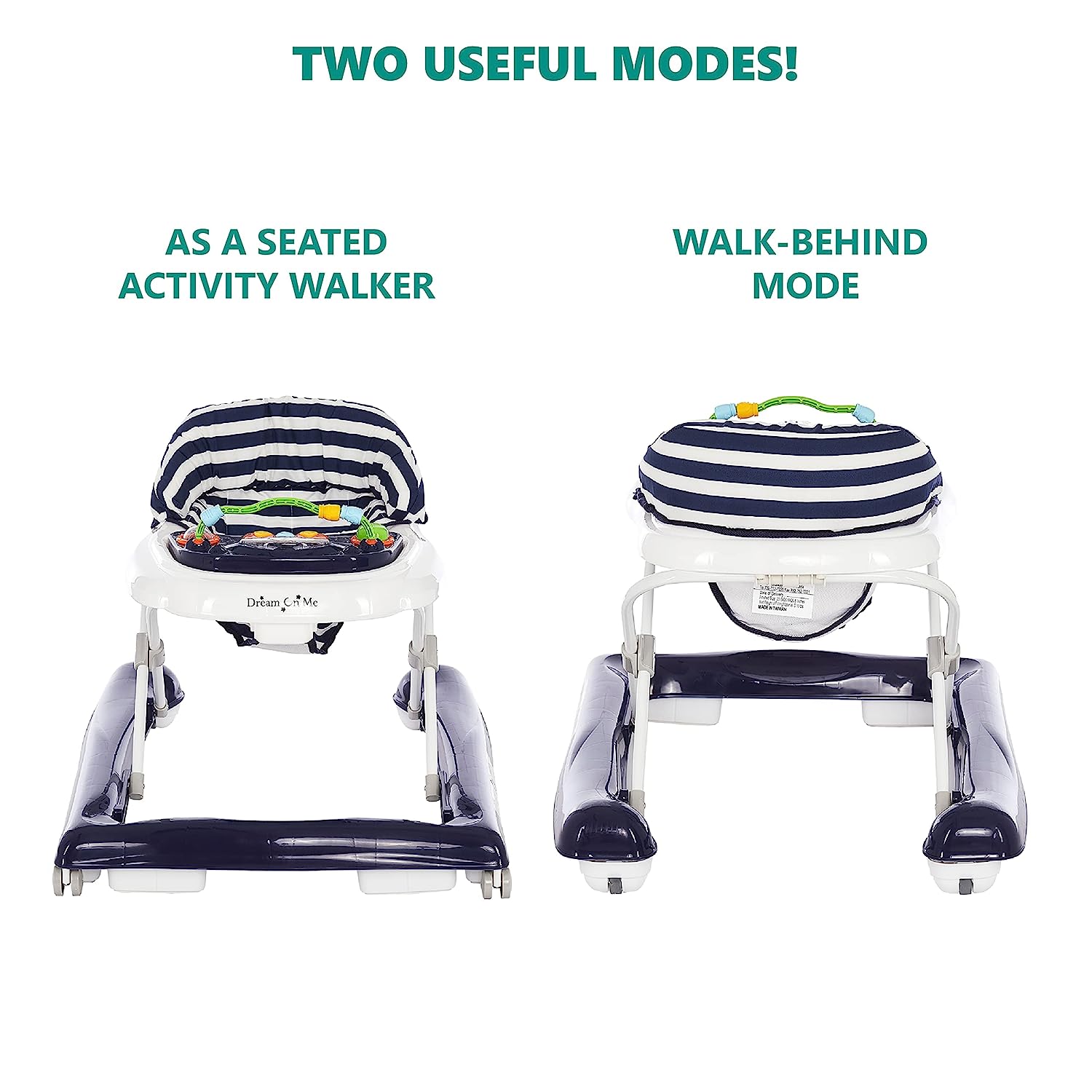 A new baby is like the beginning of all things — wonder, hope, a dream of possibilities Let Dream on me help your baby step in the world of possibilities with our Ava 2-in-1 walker Ava is a sturdy walker that babies enjoy playing with while learning how to take their first steps and feel confident pushing around the house when using in walk behind mode Surrounding your baby is a large tray to help them explore their motor skills by reaching out to shiny attractive toys High back padded seat is great to sit upright unassisted which is also machine washable The walker will also work for parents who are on the go or tight on space as it is able to fold compactly for easy transportation or storage