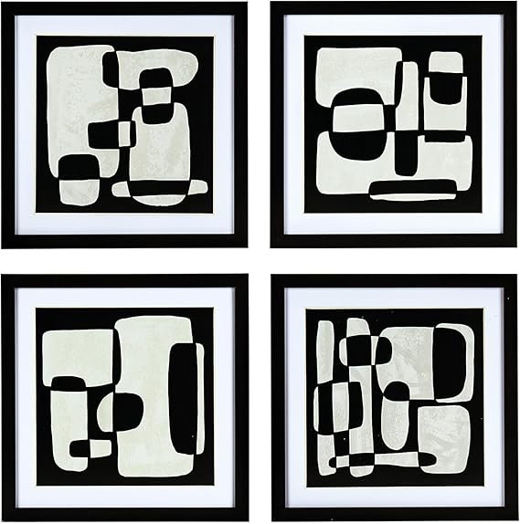 ArtbyHannah 10x10 Inches Black Framed Abstract Wall Art for Hallway, Living Room, Black and White Wall Decor for Bathroom, Matted to 8"x8", Set of 4 with Extra Print Set