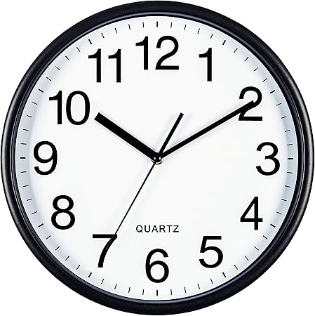 Bernhard Products Black Wall Clock, Large 13-Inch Silent Non Ticking Quartz Battery Operated Round Easy to Read Classroom/Home/School/Office Clock