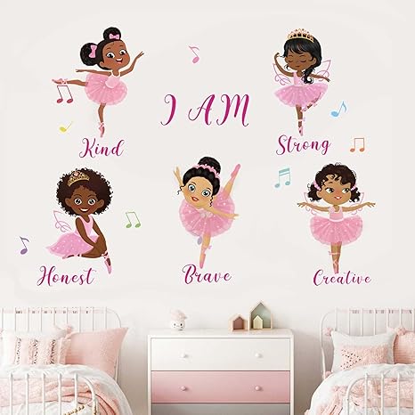 decalmile Black Girl Ballerina Wall Decals Ballet Dancing Girl Wall Stickers Baby Nursery Girls Bedroom Living Room Wall Decor