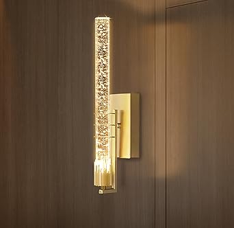 Crystal Bubble Column Wall Sconces Gold, Modern Luxury Wall Light Fixtures, Elegant Wall Lighting for Living Room Bedroom Bathroom Hallway Doorway Stairway Bedside