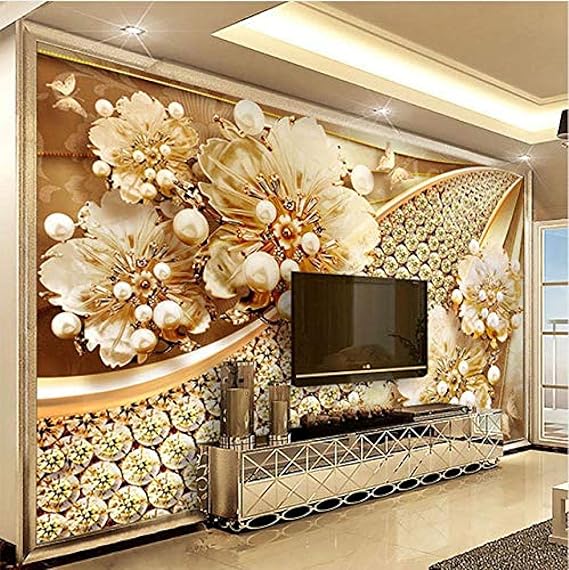 Custom Photo Wallpaper 3D Embossed Gold Jewelry Flower Mural European Style Living Room Tv Background Wall Painting Luxury Decor 108 x 75 inch (Width x Height)
