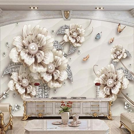 Modern Jewelry Flowers Art 3D Photo Wallpaper, Luxury Modern Custom Wall Poster Murals, Wall Painting Art Wallpaper for Living Room and Bedroom Home Decor 118" by 83"