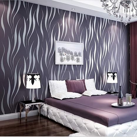 Q QIHANG Simple Fashionable Non-Woven Wallpaper 3D Embossed Three-Dimensional Flocking Foaming Wave Stripes Bedroom Living Room TV Background Wall Shop Decoration20.87 Wx393.7 L Non-Pasted (Purple)