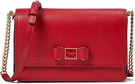 Kate Spade New York Morgan Bow Embellished Saffiano Leather Flap Chain Wallet Perfect Cherry One Size