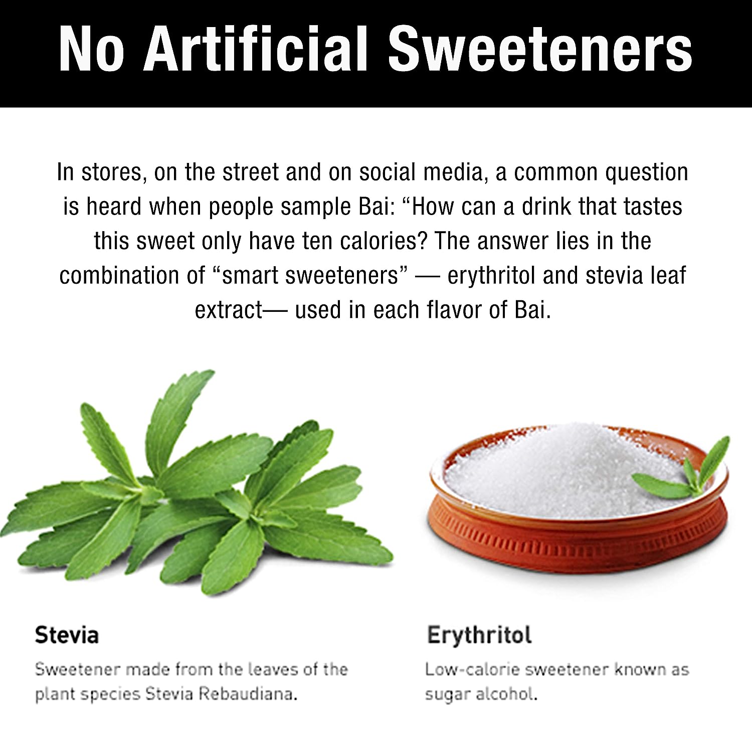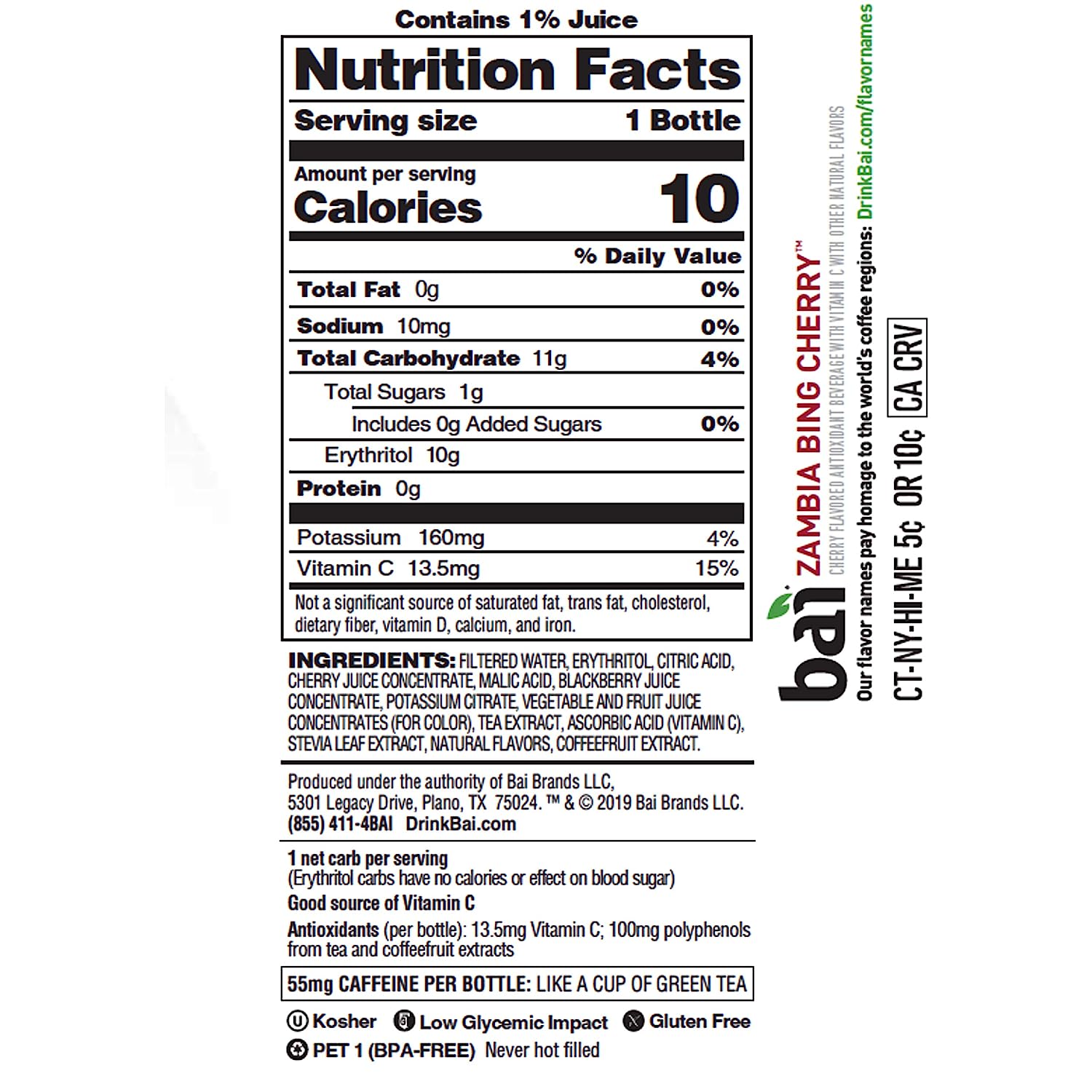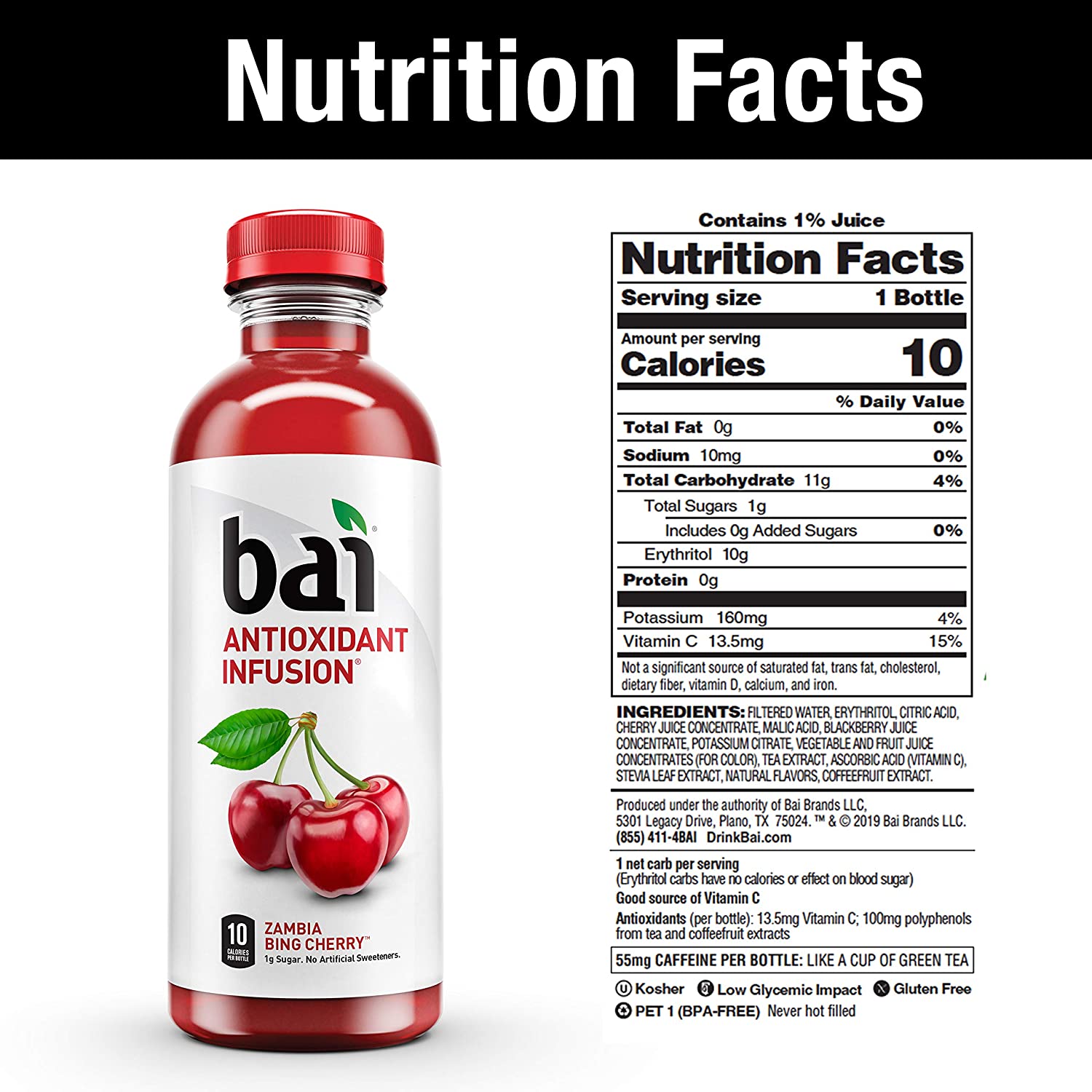 You just can’t top our original Bai drinks. Each exotic flavor is antioxidant-infused, with 1 gram of sugar, and no artificial sweeteners. They’re pretty much a party in your mouth. At Bai, we’ve reimagined and expanded water’s superpowers beyond basic hydration. Bai beverages are antioxidant, plant-powered infusions that deliver more than you ever expected from regular H2O. We wondered what water could truly become, and then we made it. Bai, It’s WonderWater™. Bai Antioxidant Infusions are flavored water beverages that deliver delicious fruity refreshment with 10 calories and 1 gram of sugar per bottle. With no artificial flavors or sweeteners, Zambia Bing Cherry Bai is exotic-flavored, infused with tea extract for plant-based caffeine, gluten free, and low glycemic impact. Bai Antioxidant Infusions deliver refreshing, bold fruit flavor for those seeking better alternatives to beverages with high sugar and calories. Everyone at Bai is committed to bringing this world to life. It’s a future too marvelous to exist only in our imaginations. We want everyone to be able to experience it. Bai’s approach to innovation guides us in our quest. We are eager to find new ways to translate modern wellness trends into tasty drinks everyone can enjoy. Because that’s the only way to make this world of better beverages a reality. And with every sip you take, we all are one step closer to our envisioned future.