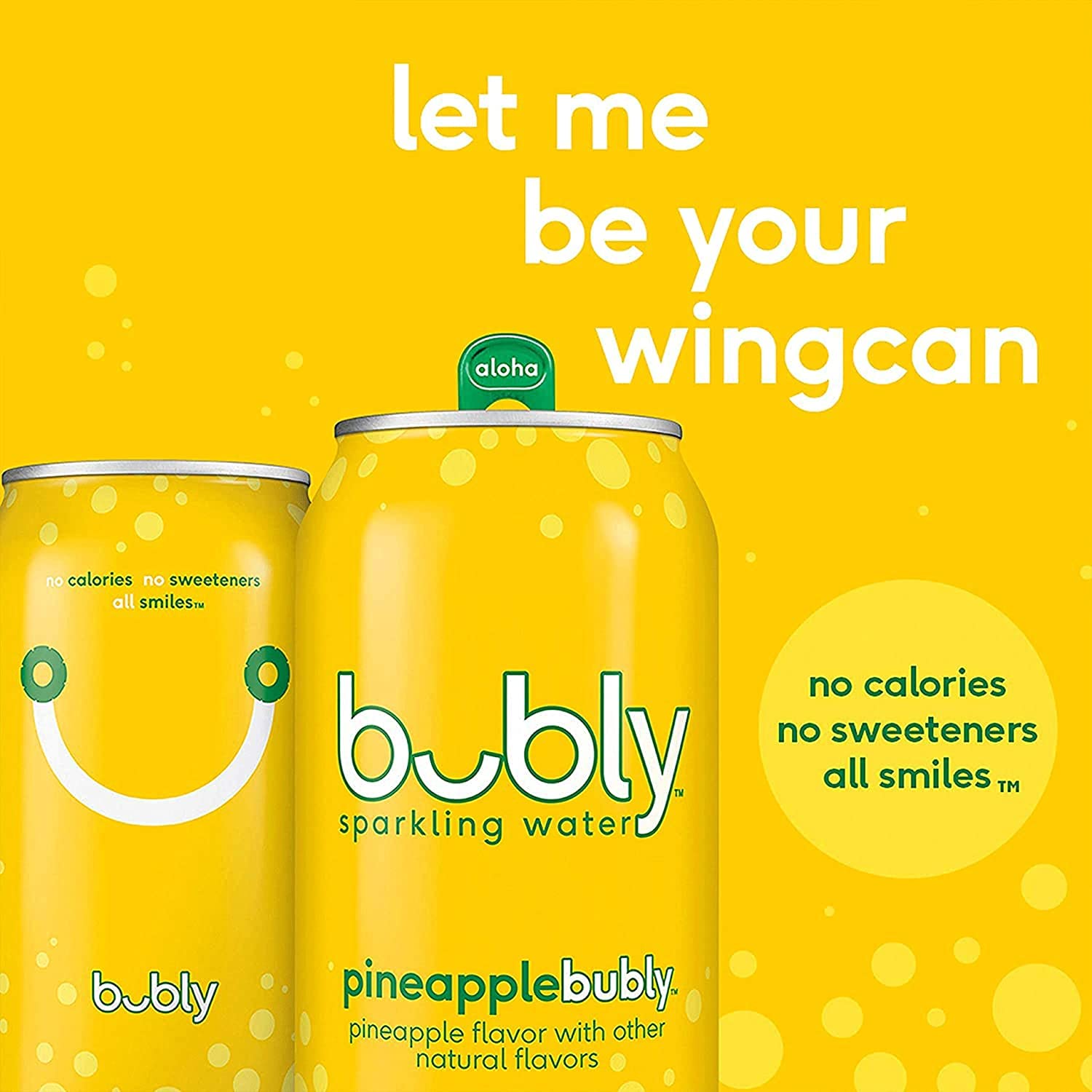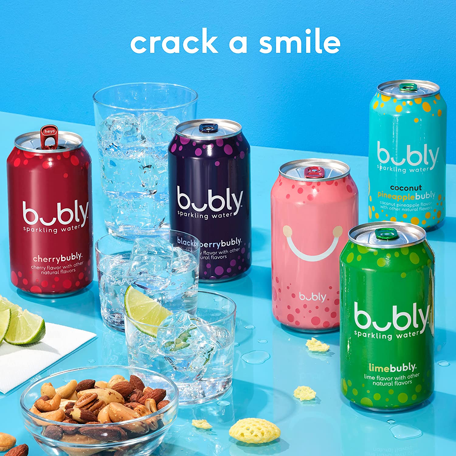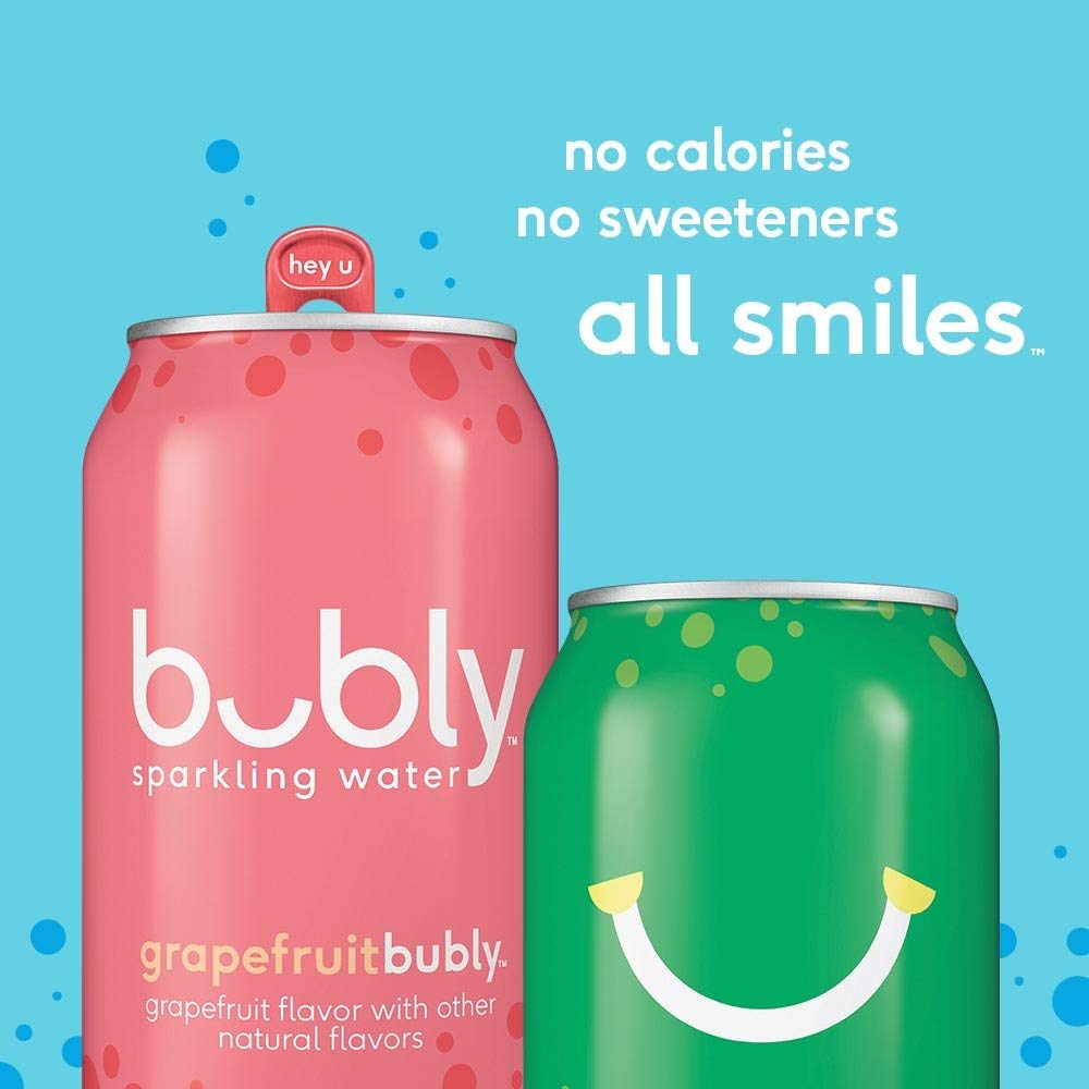 bubly sparkling water combines refreshing, crisp sparkling water with great tasting, natural flavors perfect for any occasion. With 0 calories and 0 sweeteners, bubly sparkling water is sure to put a smile on your face.