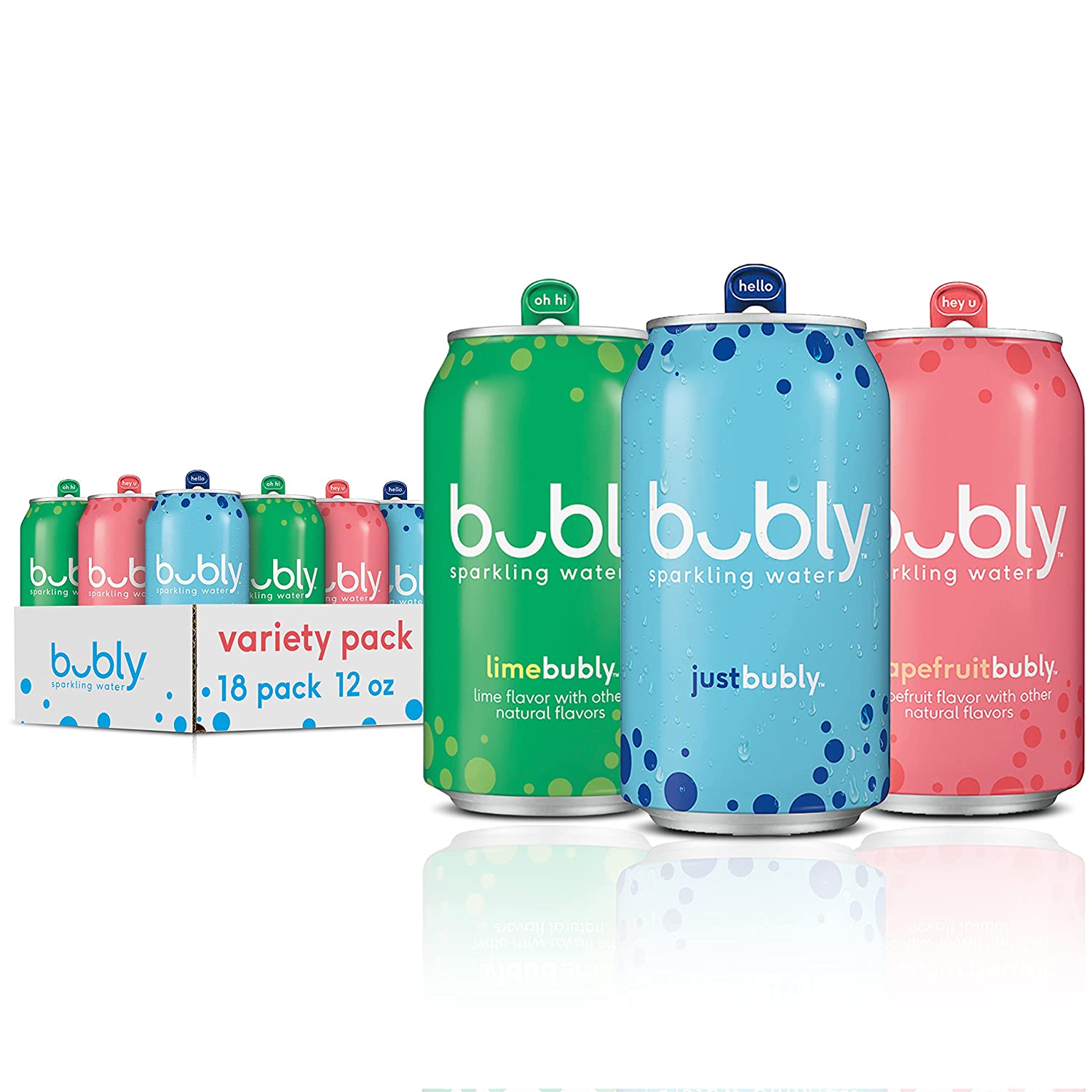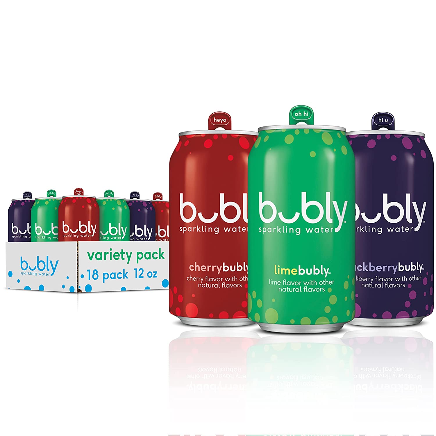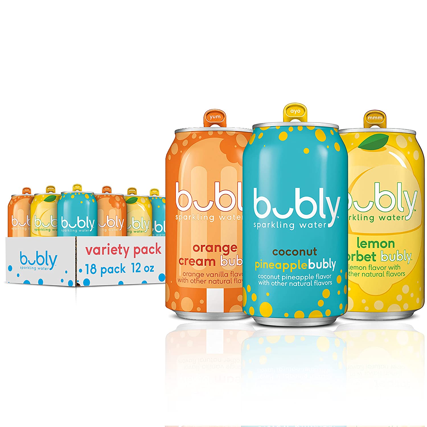 bubly Sparkling Water, 6 Flavor Variety Pack, 12 fl oz Cans (18 Pack), zero calories & zero sugar