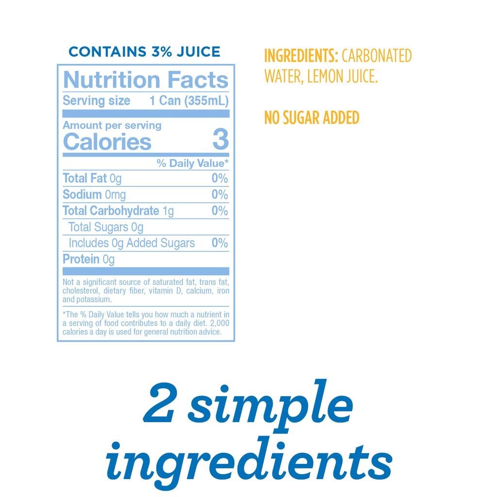 Treat yourself to the classic, tart flavor of Spindrift Lemon Sparkling Water. Made with just two ingredients, real fresh-squeezed lemons and just the right amount of carbonated water, Spindrift Lemon tastes exactly as fresh and delicious as lemon water should. Spindrift is simple and real--unsweetened and free of any added flavors, essences, or other additives, and it never contains anything artificial. Just real fruit and sparkling water. A great substitute for soda, juice, and seltzer water, Spindrift can be enjoyed straight from a chilled can, poured over ice, or as a delicious mixer for your favorite cocktail.