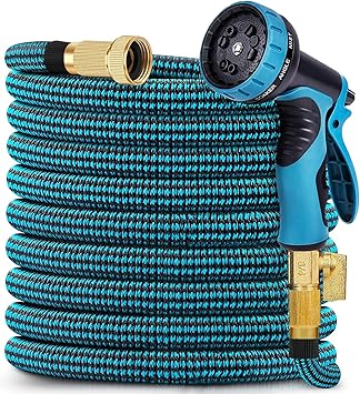 Expandable Garden Hose 100 ft, 2024 New No Kink Retractable Water Hose 100ft with 10 Pattern Spray Nozzle, Extra Strong Brass Connectors, Reinforced Expanding Latex Core, Ultra Lightweight & Flexible