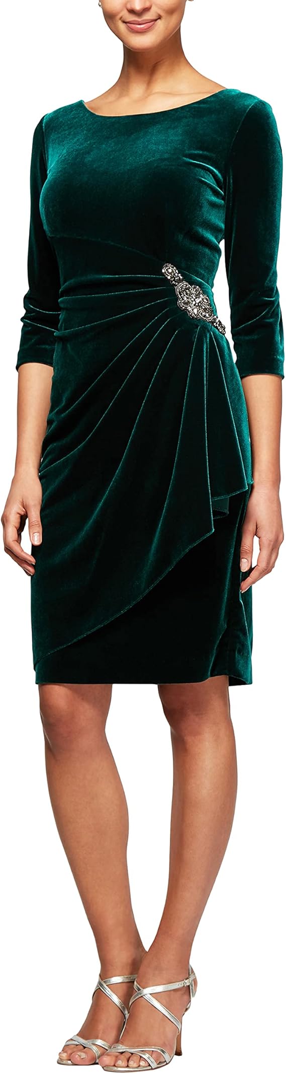 Alex Evenings Women's Short Velvet Cocktail Dress with Beading Detail (Reg Petite)