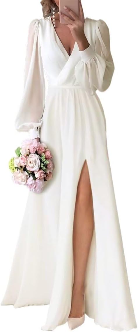 Boho Wedding Dresses for Bride Long Sleeve Chiffon Bridal Gowns for Bride 2024