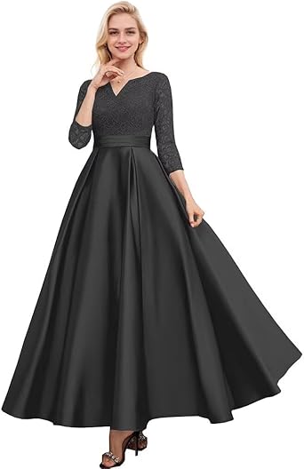 Satin Mother of The Bride Dresses for Wedding with Sleeve Long Groom Dress Formal Dress for Women Evening Party Gowns