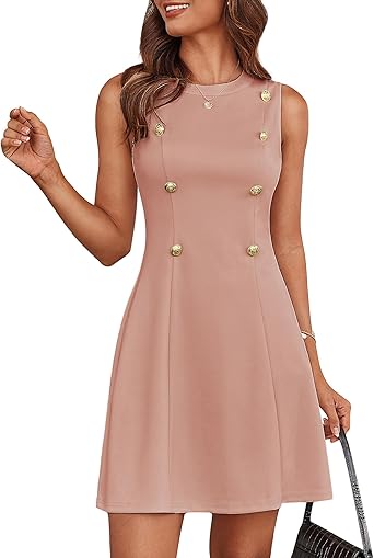GRACE KARIN Women Knit Elegant Dress Button Sleeveless Crew Neck Bodycon Work Office Formal Mini Dress
