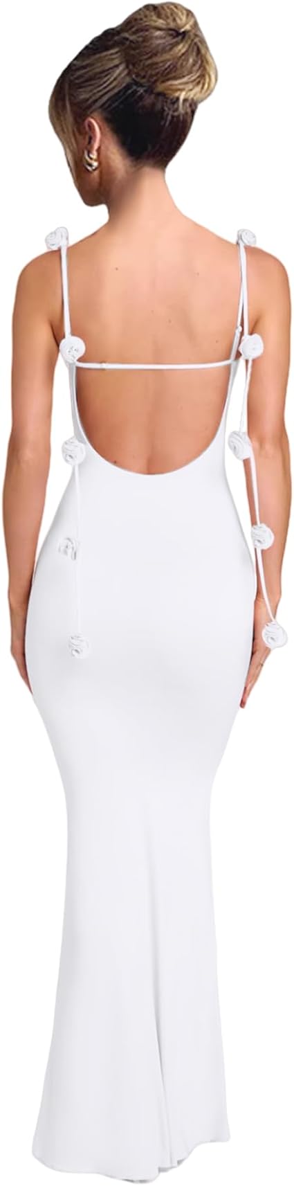 Women_Ñés Elegant Rose Floral Wedding Guest Dress Sexy Low Cut Backless Maxi Dress Fishtail Long Dress Evening Gown