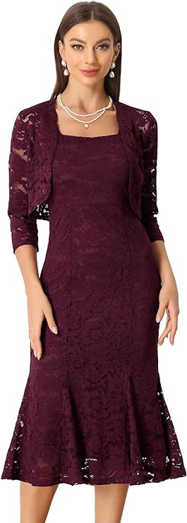 Allegra K Evening Lace Dress for Women's 2 Pieces Outfits Wedding Guest Sleeveless Dresses