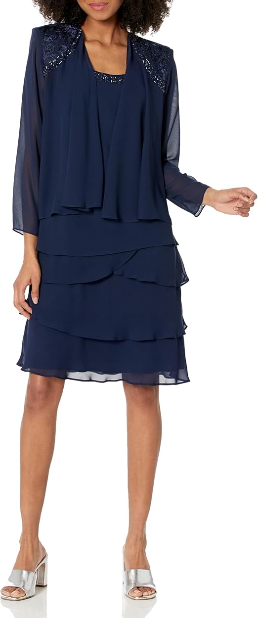 S.L. Fashions Women's Mother of The Bride Jacket Dress with Embellished Shoulder