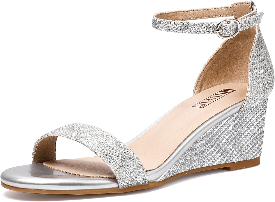 IDIFU Wedge Sandals Heels for Women Dress Shoes Open Toe with Ankle Strap for Wedding Bridal Evening Cocktail