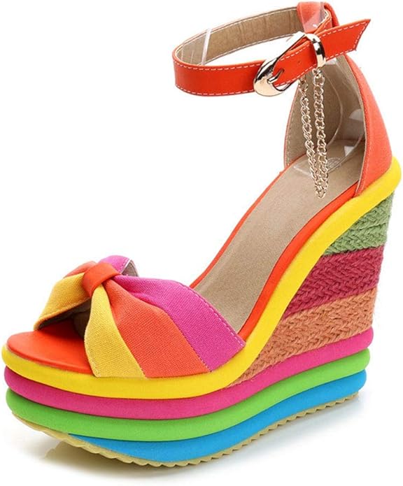 SaraIris Sandals for Women Gladiator Ankle Strap High Heel Platform Wedge Rainbow Sandals for Women