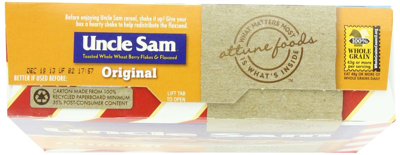 Uncle Sam Cereal, Original Toasted Whole Wheat Berry Flakes and Flaxseed, 13 Ounce (Pack of 12)