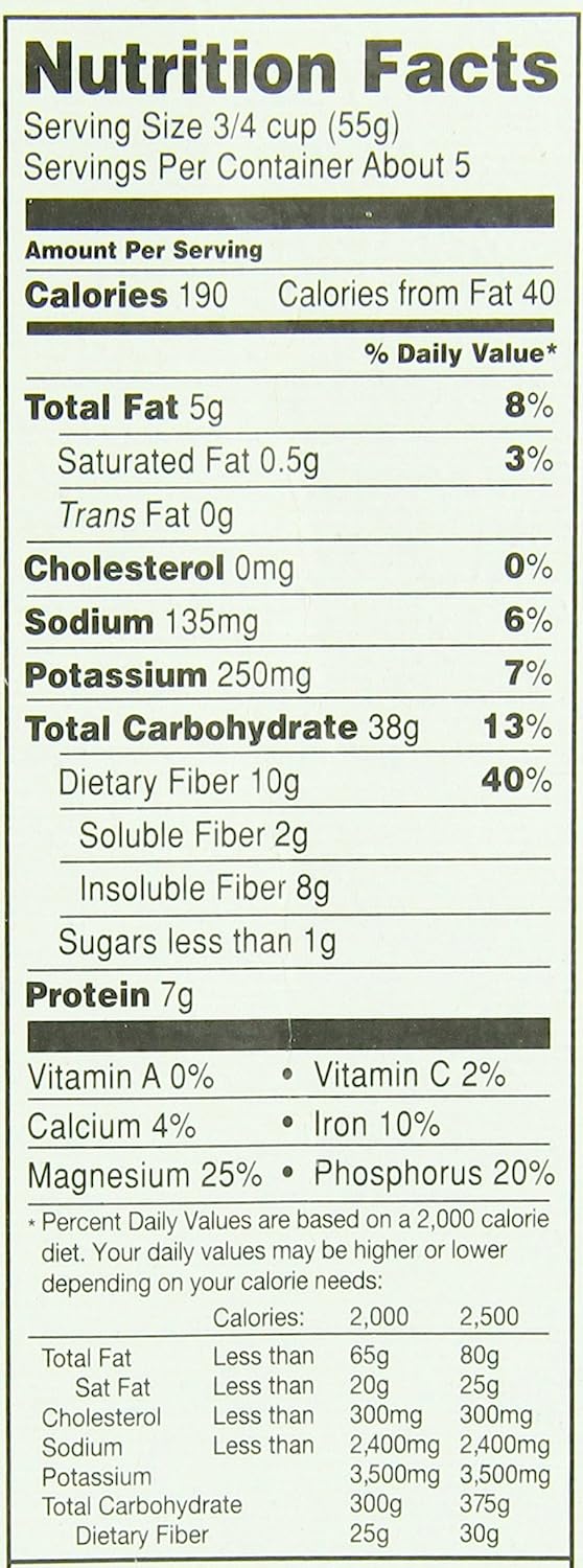 • 10 grams of fiber and less than 1 gram of sugar per serving