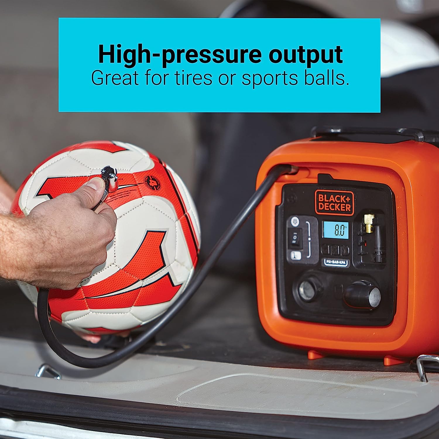 • HIGH-PRESSURE OUTPUT – Ideal for inflating sports balls, vehicle tires, and bike tires.