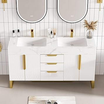 59" Bathroom Vanities with Sink Combo, Modern Wood Bathroom Storage Cabinet Undermount Double Sinks, White