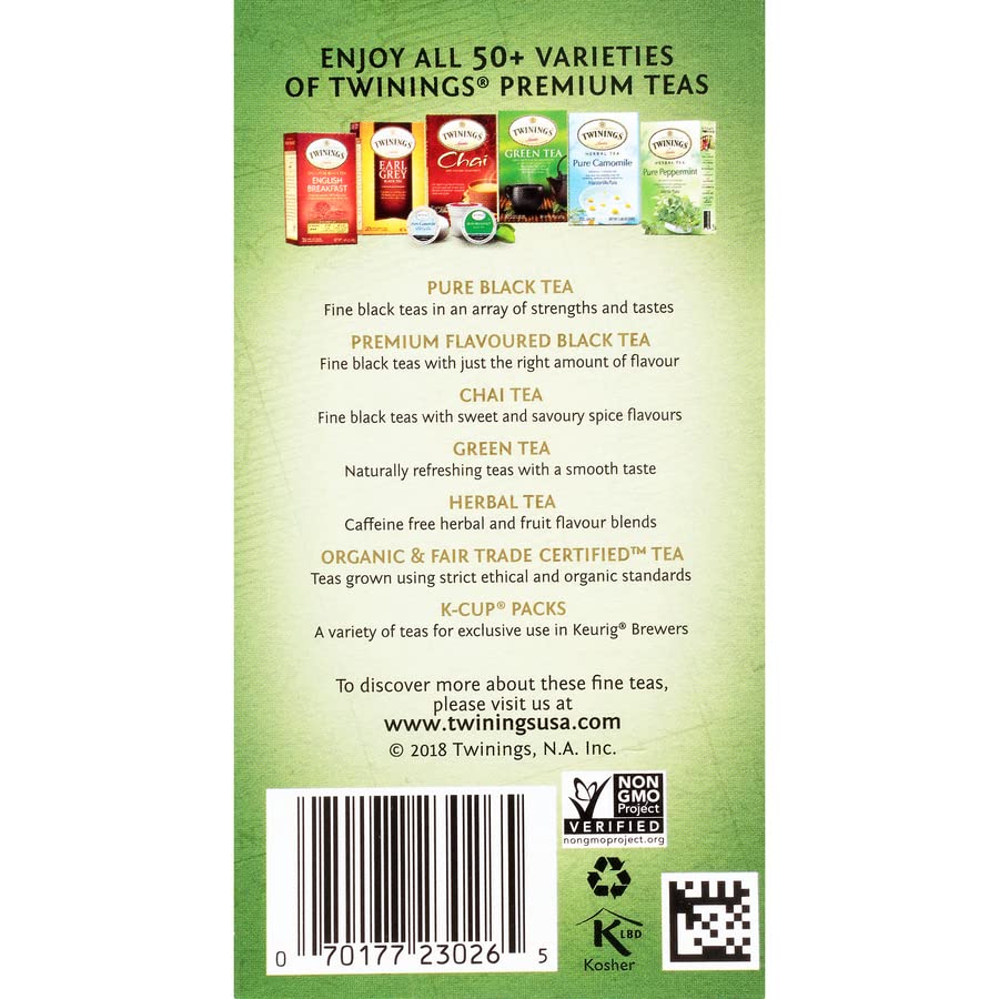 • LESS CAFFEINE THAN BLACK TEA: Twining White Tea has 25-30 mg of caffeine per serving compared to unflavored black tea at 40-65 mg in a serving.
