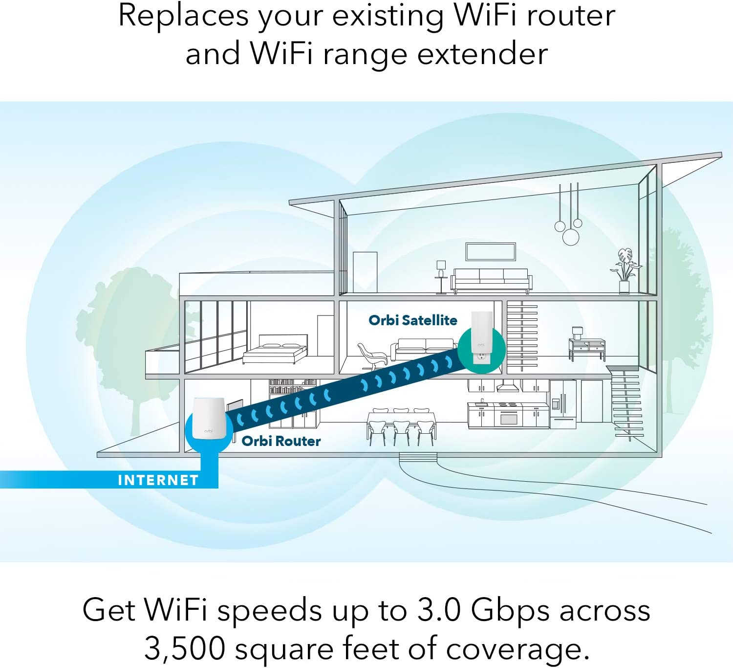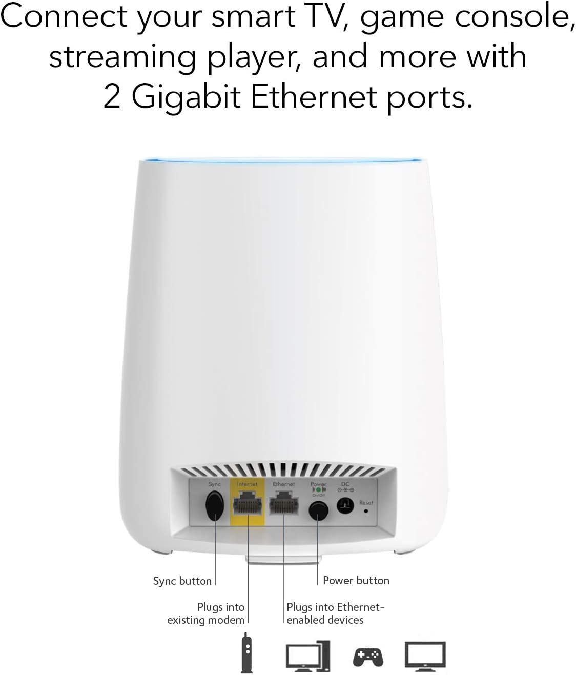 2.40 GHz ISM Band - 5 GHz UNII Band(4 x Internal) - 2200 Mbit/s Wireless Speed - 1 x Network Port - 1 x Broadband Port - Gigabit Ethernet . With its sleek, modern design, you can display it like a piece of artwork on your entertainment center. Orbi's gorgeous shell encases four high-gain internal antennas that increase wireless range to the far corners of your home.