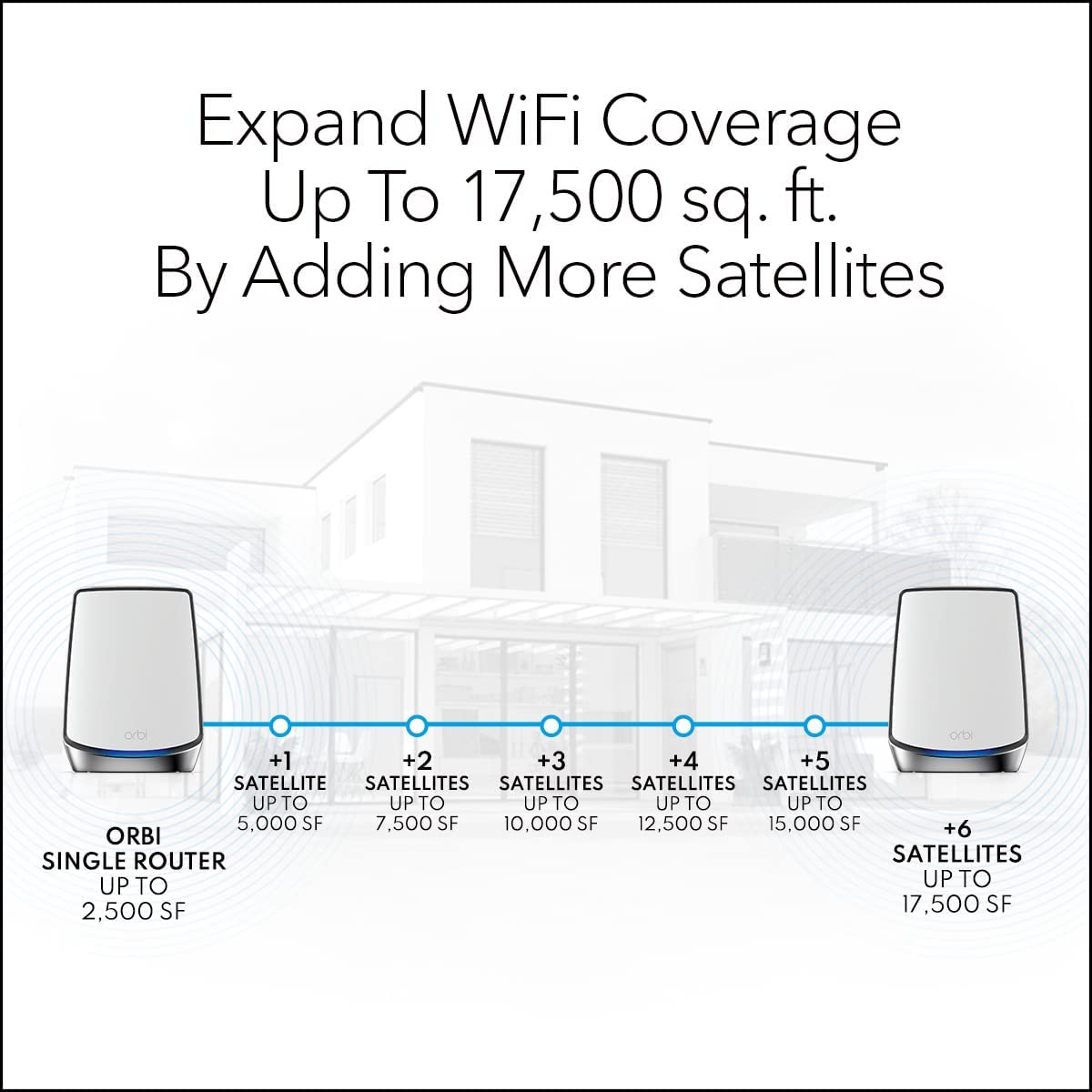 Orbi Wi-Fi 6 is a Tri-Band Wi-Fi System built with the latest and fastest Wi-Fi 6 technology to provide the ultimate smart home experience with Wi-Fi coverage and connection capacity beyond belief. Keep ALL Wi-Fi connections strong, in every room, all the time with enough bandwidth for all your devices, multiple 4K/8K UHD streaming, music for your Wi-Fi connected speakers, fast online game play, smart lights, Wi-Fi security devices and more. Dedicated quad-stream Wi-Fi 6 backhaul allows for streaming 4K or 8K videos without delay. Ideal for Gigabit and multi-Gigabit Internet speed service, supporting up to 2.5 Gbps download speeds. Place the Satellites anywhere in your home to get Gigabit speeds where you want them.