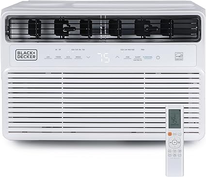 BLACK+DECKER 8, 000 BTU Inverter Window Air Conditioner, Window AC Units for Up To 350 Sq. Ft., ENERGY STAR Rated AC Unit, Full Function Remote Control, White