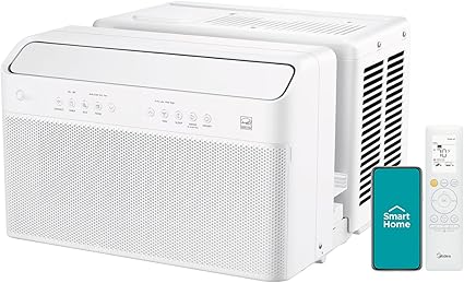 Midea 12, 000 BTU U-Shaped Smart Inverter Air ConditioneräóñCools up to 550 Sq. Ft., Ultra Quiet with Open Window Flexibility, Works with Alexa/Google Assistant, 35% Energy Savings, Remote Control