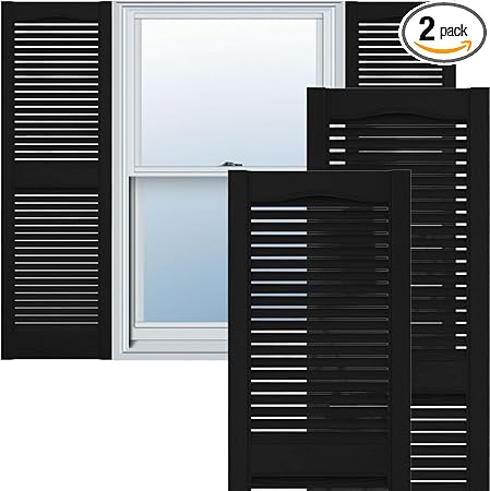 Ekena Millwork Lifetime Vinyl LL1S14X03100BL Standard Cathedral Top Center Mullion, Open Louver Vinyl Shutters, w/Installation Shutter-Lok's & Matching Screws (Per Pair), 14 1/2"W x 31"H, Black