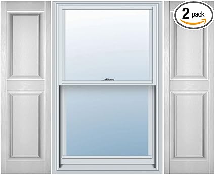 Ekena Millwork Lifetime Vinyl LP2S12X03100WH Standard Two Equal Panel Vinyls, Raised Panel Vinyl Shutters, w/Installation Shutter-Lok's & Matching Screws (Per Pair), 12"W x 31"H, White