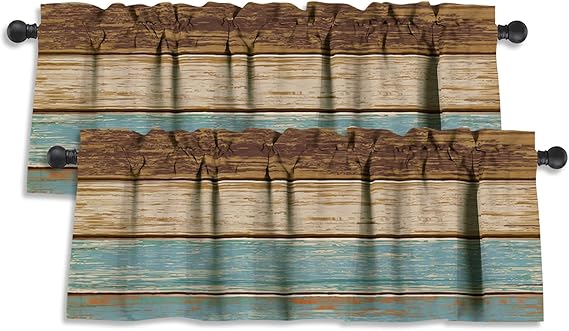 Wood Texture Kitchen Curtains Abstract Art Valances for Windows Blackout Window Treatment Valances Rod Pocket Curtain Valance for Bathroom Bedroom Living Room Cafe, 52 X 18 Inch, 2 Panel