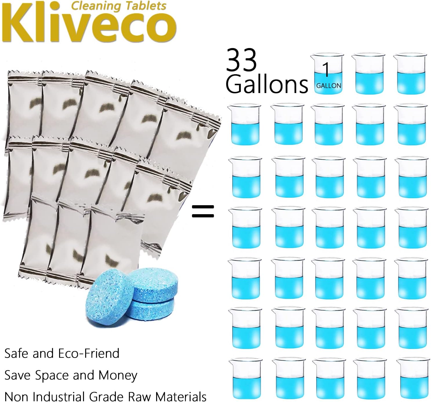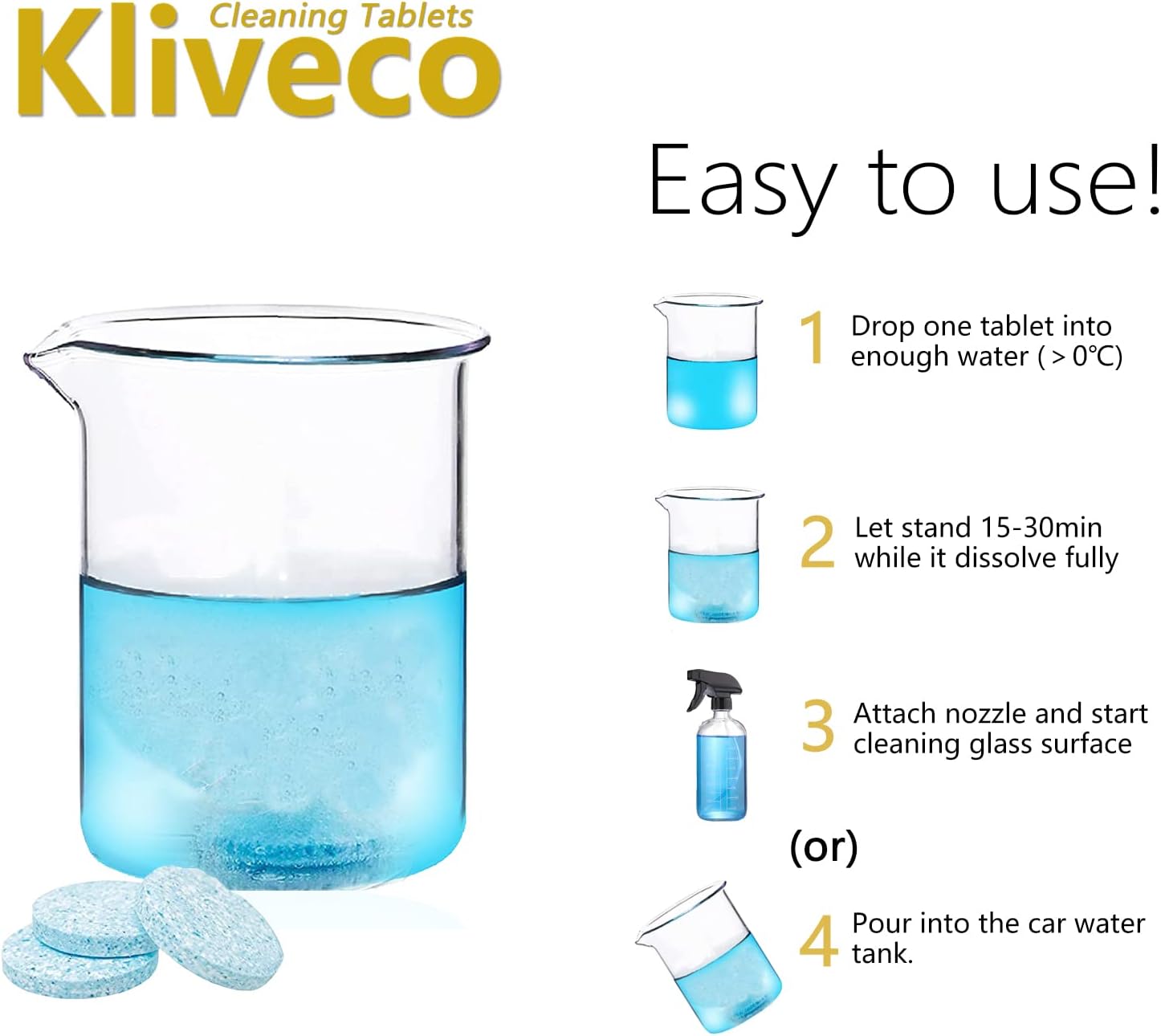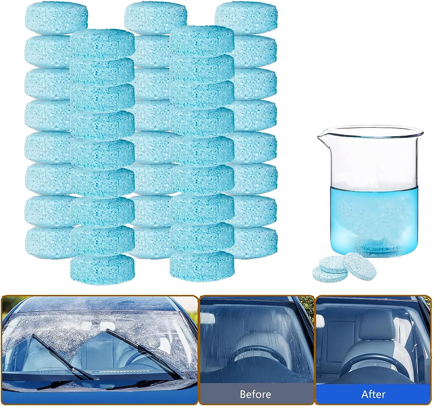 Kliveco 30PCS Car Windshield Washer Fluid Tablet,Windshield Wiper Fluid,Window and Glass Cleaner Effervescent Tablets,1 Pack Makes 33 Gallons,car,Home(Winter: Use With De-icer or Methanol)
