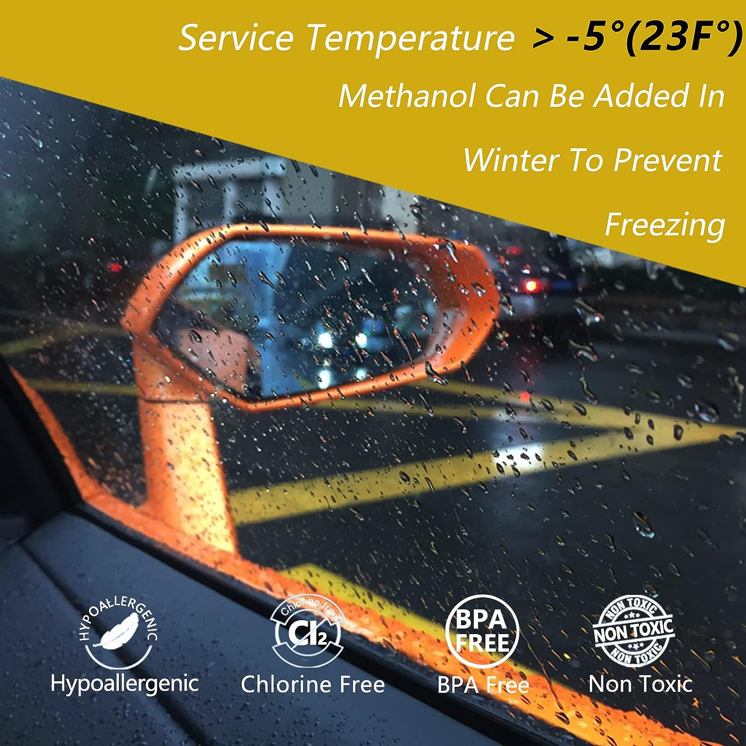 • CLEAN WINDOW AND SAFE DRIVING: Kliveco's windshield wiper fluid effectively removes dirt, grime, ensuring a clean and clear window for safe driving. The formula is designed to reduce the friction between the wiper blade and glass, softening the wiper and reducing noise .