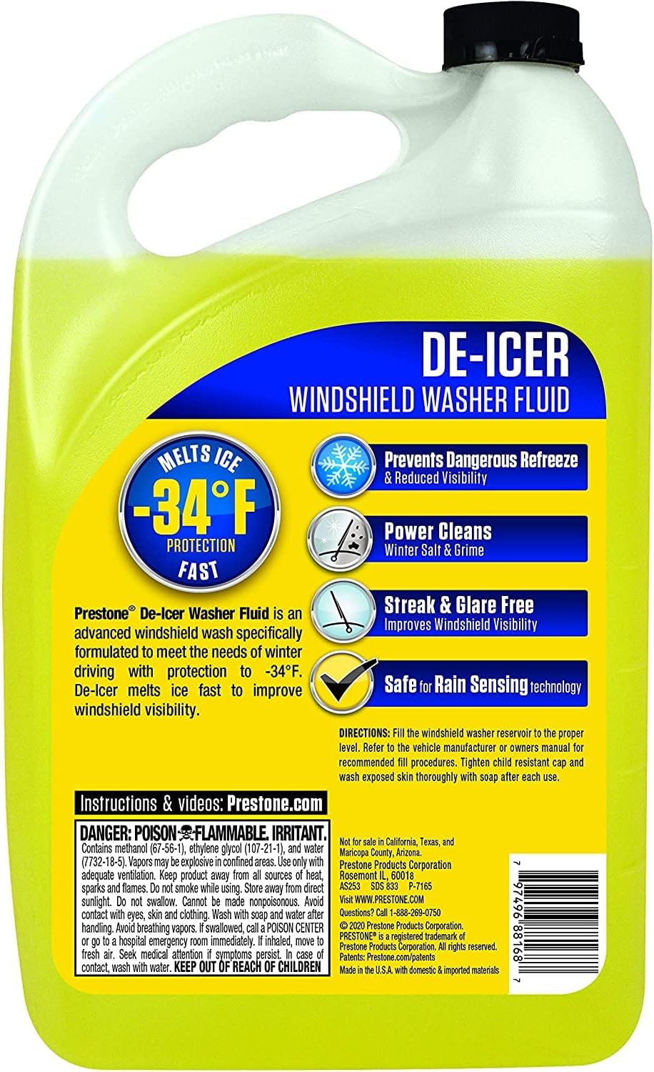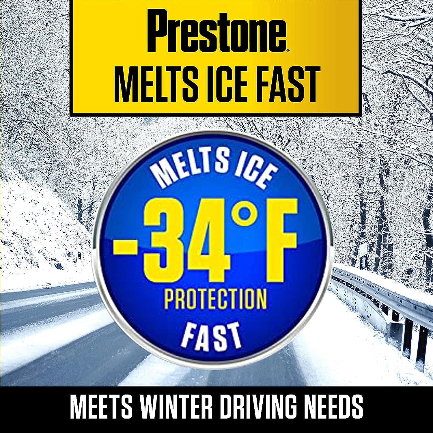 • Prestone’s advanced formula is streak- and glare-free, and its -34°F deep freeze protection melts ice quickly and Power Cleans away winter salt and grime