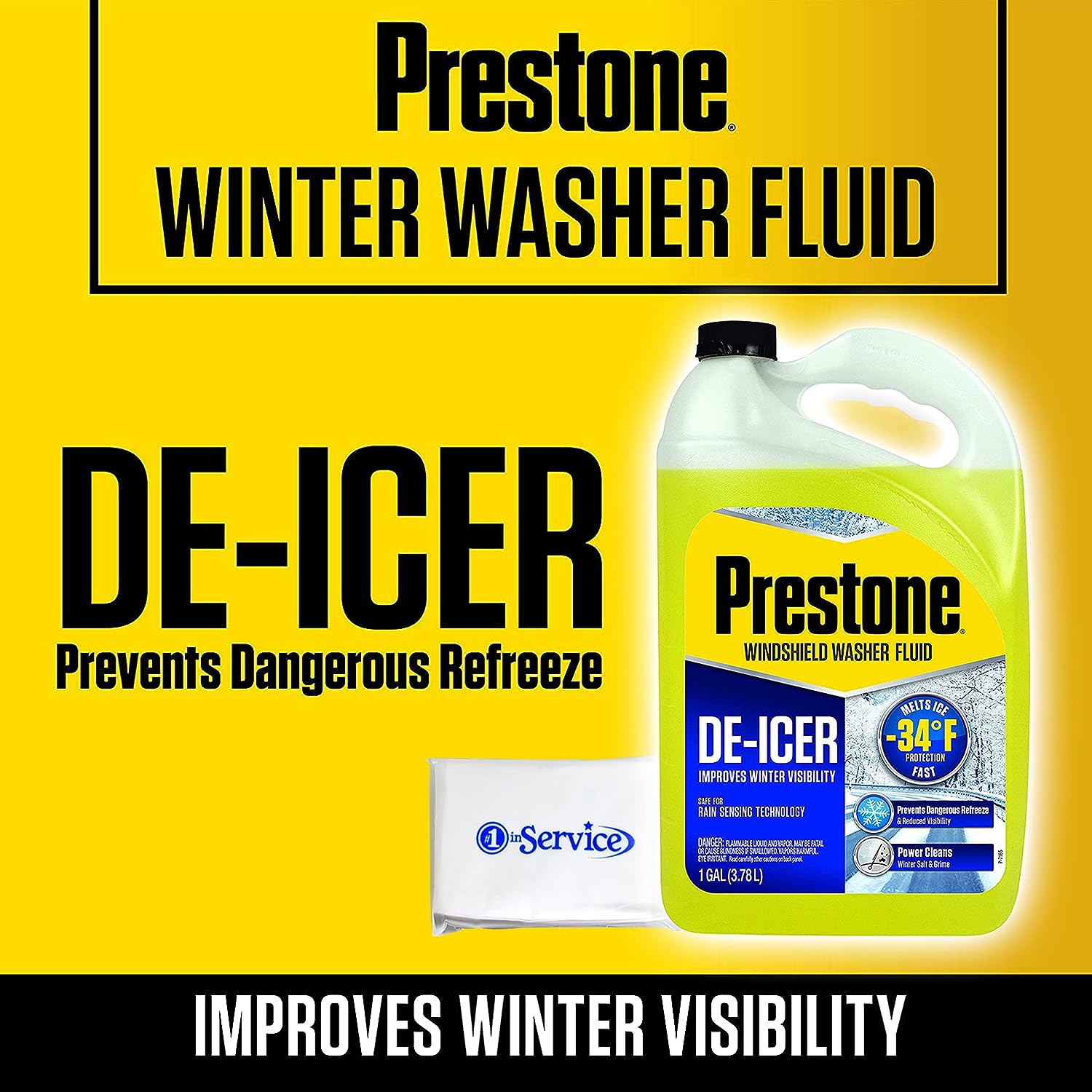 Prestone AS253 De-Icer Winter Windshield Washer Fluid, Freeze Protection up to -34°F, Power Cleans Winter Salt and Grime, Deices & Prevents Dangerous Refreeze, Streak Free & Glare Free, Safe for Rain Sensing Wipers, 1 Gallon Includes NOIS Tissue Pack