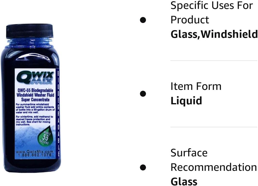◼️ Qwix Mix Biodegradable Summertime Washer Fluid Concentrate. ◼️ Are you tired of running out of washer fluid? Keep this in your car and you’ll always have a premium product ready to keep your windshield clean. ◼️ Don’t pay to ship water! Washer fluid is at least 70% water and you’re paying to ship that every time you purchase a gallon jug. ◼️ Just one 8 oz. bottle eliminates 32 plastic gallon jugs. ◼️ Love it or we’ll buy it back from you. No questions asked.