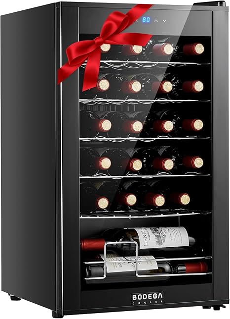 BODEGACOOLER Wine Cooler Refrigerator 24 Bottle, Mini Fridge with 41-64.4´�F Digital Temperature Control Glass Door, Small Freestanding Wine Refrigerator for Red, White and Champagne