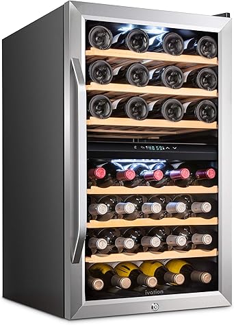 Ivation 43 Bottle Dual Zone Wine Cooler Refrigerator w/Lock | Large Freestanding Wine Cellar For Red, White, Champagne & Sparkling Wine | 41f-64f Digital Temperature Control Fridge Stainless Steel
